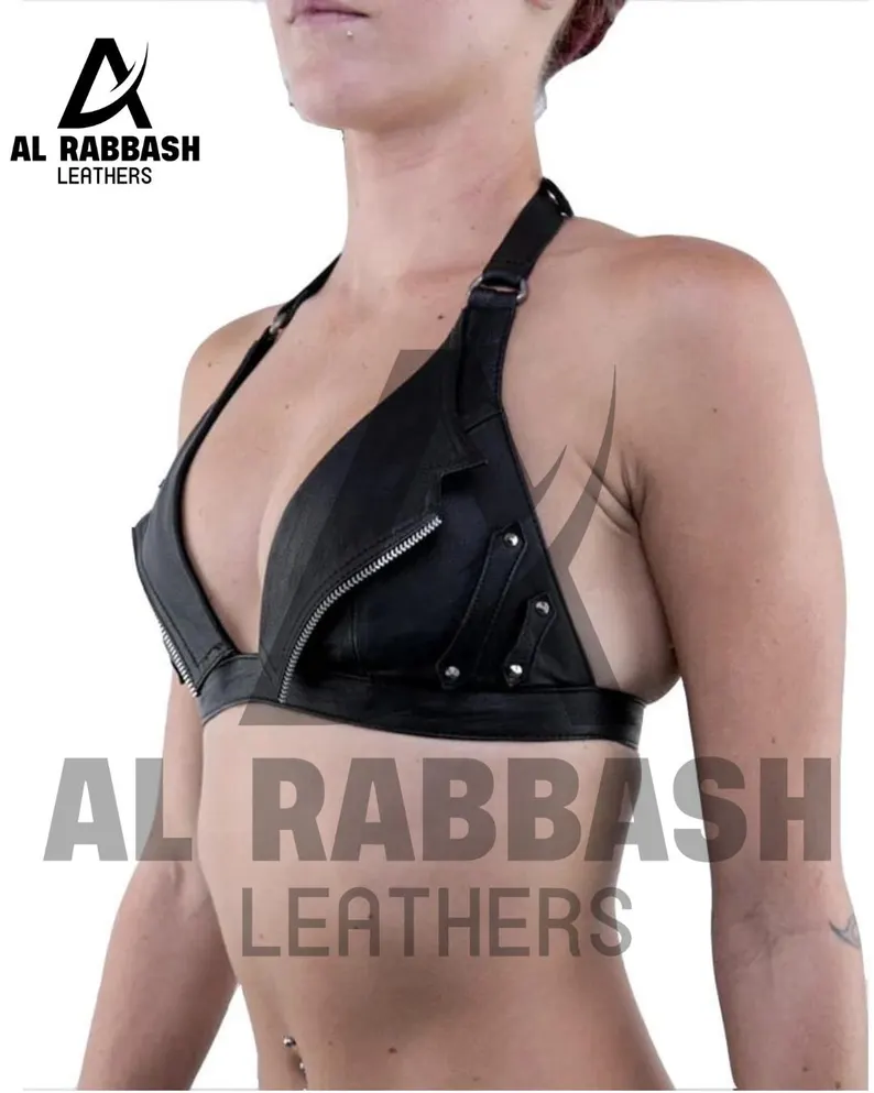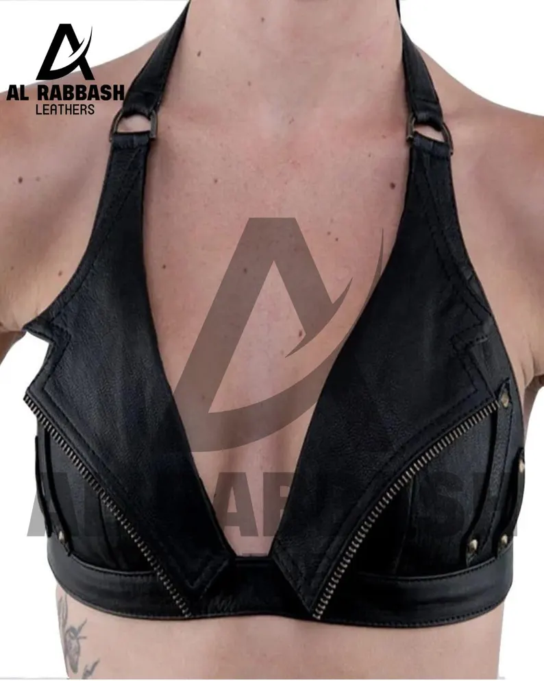 Bring home a premium handmade leather halter bra top, designed to combine edgy biker style, structured support, and superior craftsmanship. Crafted from 100% genuine leather, this crop top offers a soft yet durable feel with a smooth, high-quality finish. Carefully handmade by skilled artisans, it delivers a flattering fit, bold style, and long-lasting wear for alternative fashion, clubwear, or statement outfits.