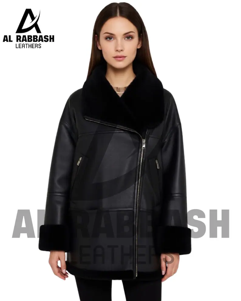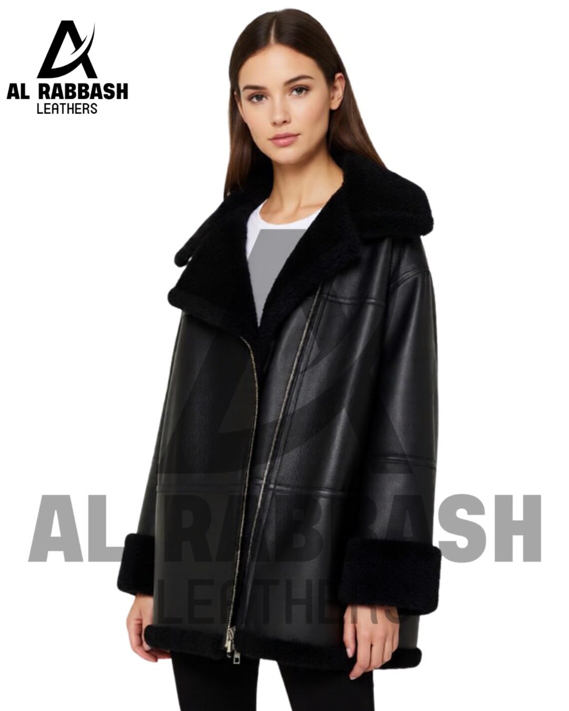 Bring home a premium handmade women’s shearling leather jacket, designed to combine luxurious warmth, oversized comfort, and timeless style. Crafted from 100% genuine sheepskin leather with a soft shearling lining, this jacket offers exceptional durability, a cozy feel, and refined craftsmanship. Carefully handmade by skilled artisans, it delivers style, comfort, and reliability in one must-have winter wardrobe piece.