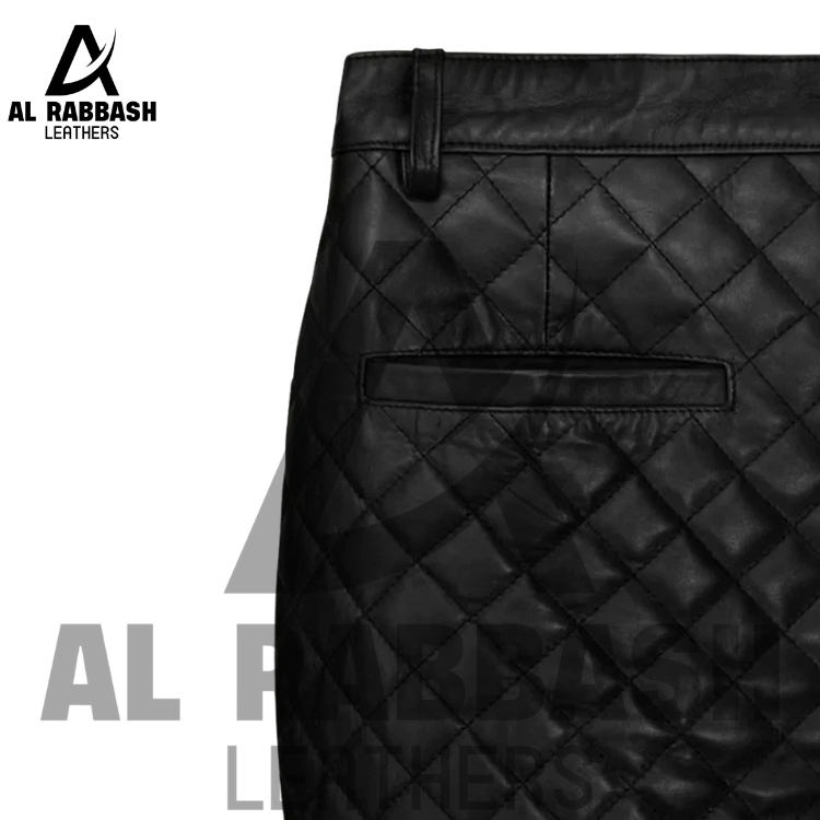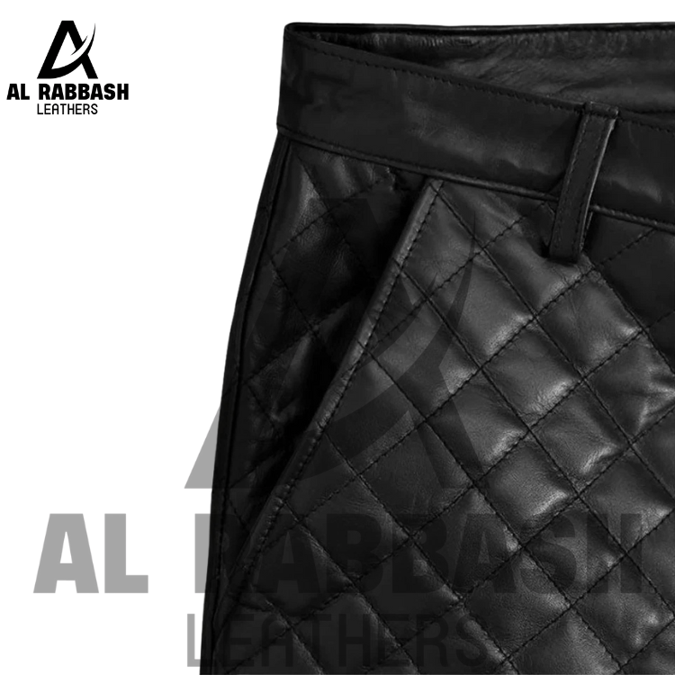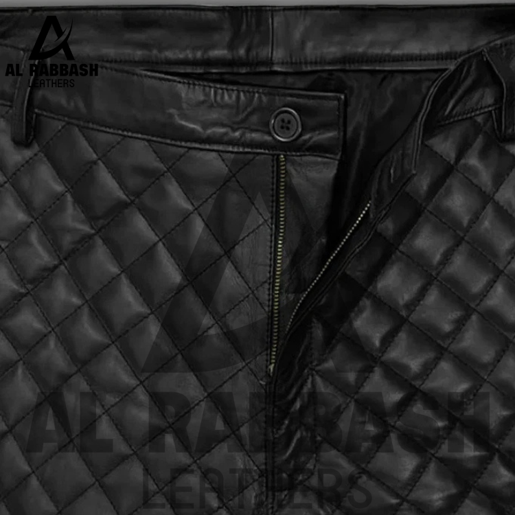 Men’s Quilted Genuine Leather Pants – Black Biker Trousers Custom Made